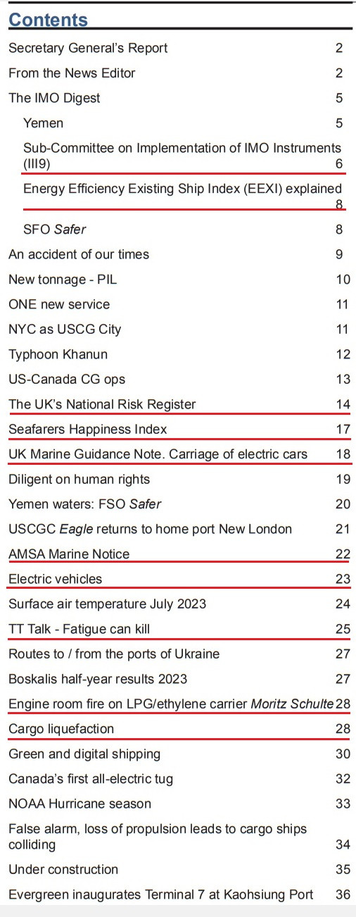 L'IFSMA, la Fédération Internationale des Associations de Capitaines de Navires a publié sa "Newsletter" N° 68 de septembre 2023.Voici le sommaire du document que vous pouvez ouvrir en pièce-jointe :