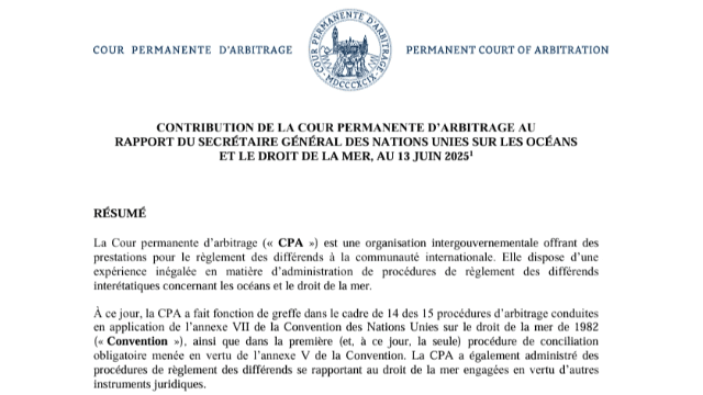CONTRIBUTION DE LA COUR PERMANENTE D’ARBITRAGE AU RAPPORT DU SECRÉTAIRE GÉNÉRAL DES NATIONS UNIES SUR LES OCÉANS ET LE DROIT DE LA MER, AU 13 JUIN 2025