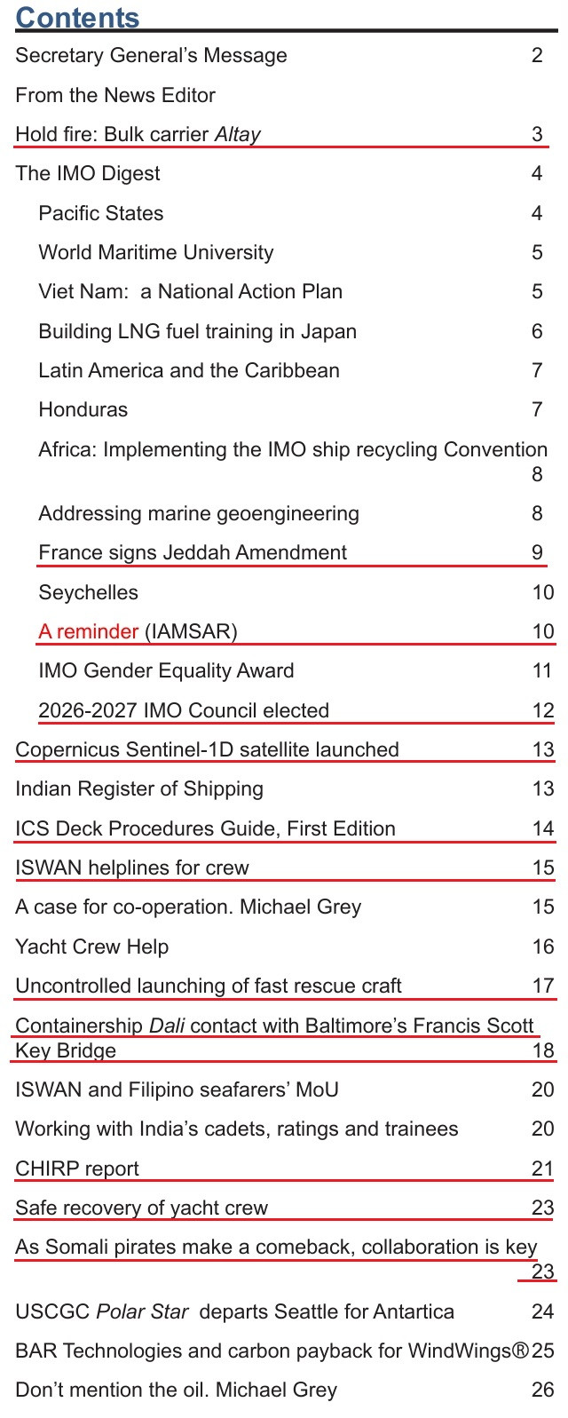 L'IFSMA, la Fédération Internationale des Associations de Capitaines de Navires a publié sa "Newsletter" N° 095 de décembre 2025. Voici le sommaire du document que vous pouvez retrouver en pièce-jointe :