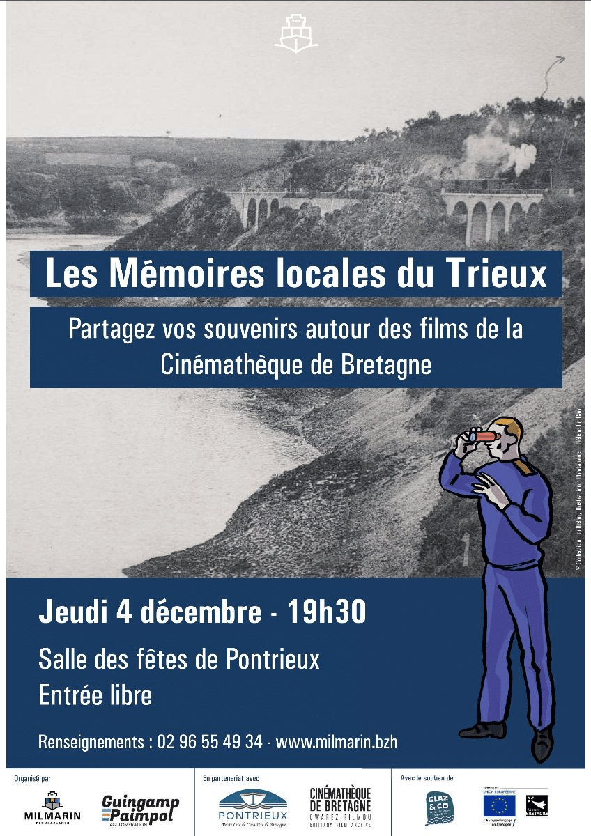 MIL'INFOS DÉCEMBRE 2025C'est une belle année qui se termine à Milmarin avec un nouvel événement dans une commune partenaire de l'exposition Rivages partagés. Nous vous retrouvons cette fois sur les rivages du Trieux pour partager souvenirs et histoires des activités maritimes, autour de films d'archives.Comme tous les hivers, Milmarin reste ouvert à la visite. 2026 se prépare aussi activement en coulisses, avec des événements à Plouézec et Plourivo en début d'année, puis bientôt une nouvelle exposition temporaire qui prendra la suite de Rivages partagés !Bonne lecture et bonnes fêtes de fin d'année,L'équipage de MilmarinLes Mémoires locales du TrieuxJeudi 4 décembre, 19h30salle des fêtes de Pontrieux(sous la mairie)Ouvert à tous, entrée libre Lors d’une soirée conviviale, remontez le temps et le Trieux avec des films issus des collections de la Cinémathèque de Bretagne.Partagez les histoires que vous avez entendues, vos anecdotes et souvenirs d’enfance sur Pontrieux, son port, les sabliers, la cartonnerie Huet, la pêche au saumon ou le lin… Pour les plus jeunes, découvrez les activités de la commune aujourd’hui disparues.La cabine à souvenirs de Milmarin sera ouverte pour recueillir vos récits. !Organisé dans le cadre de l'exposition Rivages partagés,en partenariat avec la commune de Pontrieux.Rivages partagésLes œuvres se découvrent aussi en hiver !Au cours de vos promenades hivernales, vous tomberez peut-être nez à nez avec une voile géante, des perles mystérieuses gravées, une signalétique artistique ou une embarcation bien spéciale... ce sont les graines semées par Milmarin au cours des projets menés de Pontrieux à Plouézec cette année !Retour surLe Mois du film documentaire s'est déroulé autour de deux projections les 14 et 15 novembre. Nous avions retenu cette année le thème de la pêche, racontée par plusieurs générations de capitaines de grande pêche dans "La part des singes", et par un futur marin-pêcheur dans "Félix contre le reste du monde". Le premier film nous a permis d'expérimenter le ciné-concert à la Sirène, avec la prestation sur mesure du groupe Next Quartet. Merci à tous pour vos retours enthousiastes !A venir en décembreMilmarin est ouvert les mercredis, vendredis et dimanches de 10h à 12h30 et 14h à 17h.Vous pourrez visiter les expositions et trouver de l'inspiration pour vos cadeaux de Noël à la boutique !En décembre, Milmarin est ouvertmercredi, vendredi et dimanche, de 10h à 12h30 et 14h à 17hfermé les mercredis 24 et 3116 rue de la Résistance, 22620 Ploubazlanec02 96 55 49 34Copyright © 2025 Milmarin, All rights reserved.You are receiving this email because you opted in via our website.Our mailing address is:Milmarin16 rue de la RésistancePloubazlanec 22620France
